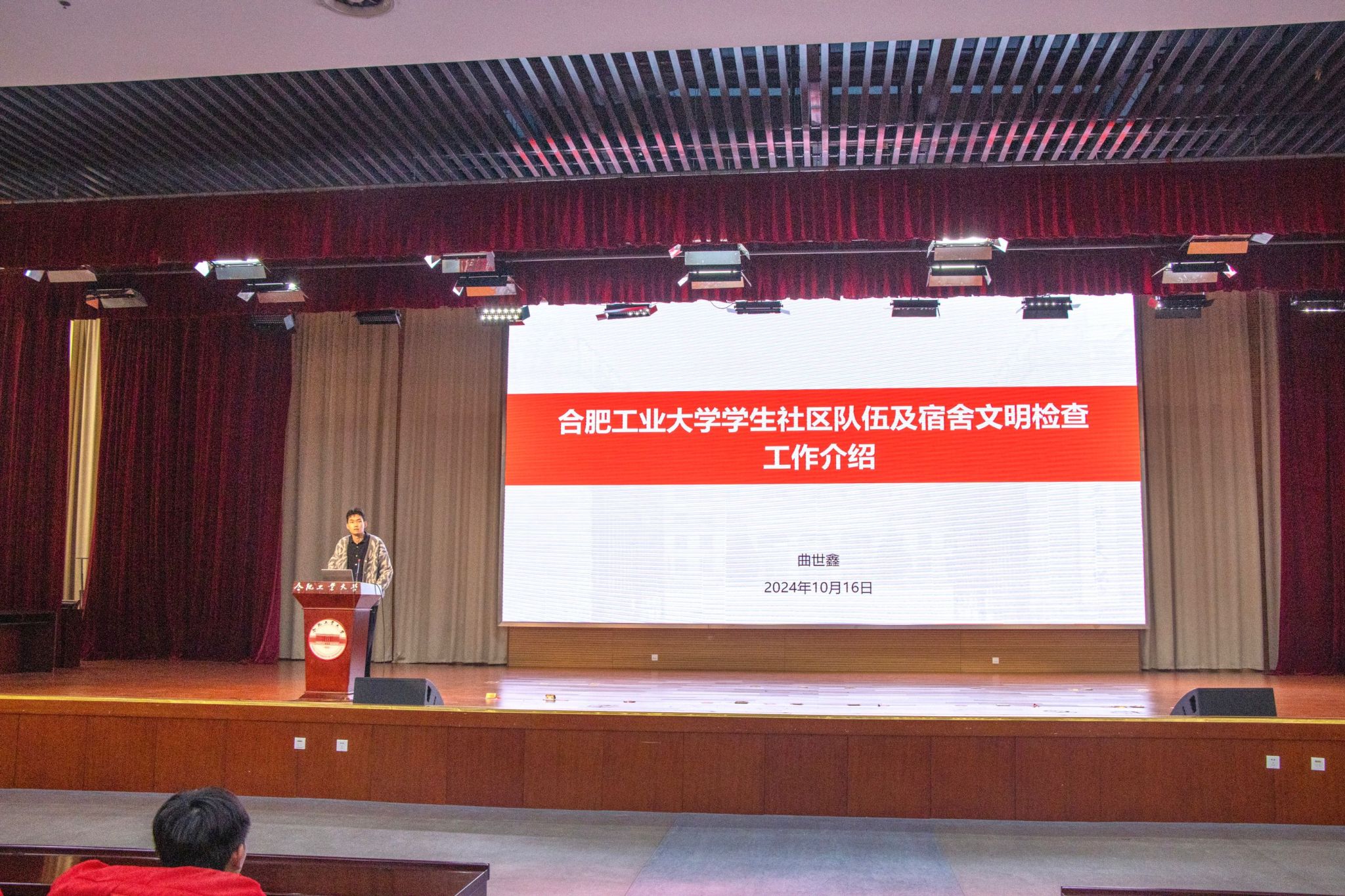 学生社区辅导员曲世鑫做学生社区队伍及宿舍文明检查工作介绍,从学生党建前沿阵地、三全育人实践园地、智慧服务创新基地、平安校园样板高地等层面,让同学们深入了解了“一站式”学生社区和智慧社区平台,重点阐释了宿舍文明创建是劳动教育实践环节的有效载体,讲解了宿舍文明安全与卫生检查规范,引导学生深刻认识个人内务整理的必要性和重要性,推动创建“整洁、有序、安全、文明、和谐”的学生宿舍。