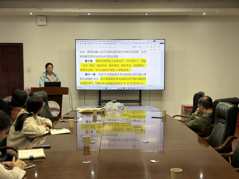 最后,本科教学办公室主任孙进兰老师对教学、考试及教学事故处理三类文件进行了系统解读。她结合典型案例详细阐释了教学文件的编制规范、考试组织与管理要求,以及教学事故的认定与处理流程,进一步强化了教师对教学规范与质量要求的认识,引导全体教师以更高标准落实教学管理工作。